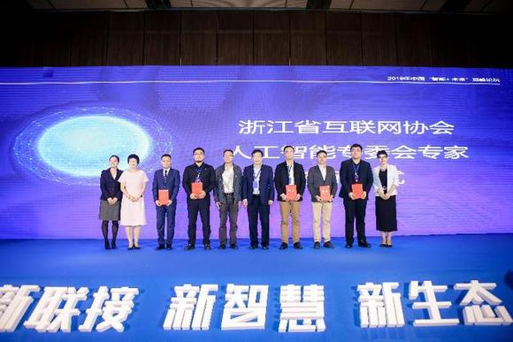 胡辉(左四)被浙江省互联网协会"人工智能专业委员会"授予特聘专家称号