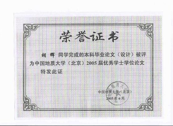 在中国地质大学读本硕期间,胡辉将学霸的角色"扮演"到底。他的本硕毕业论文均被评为校级优秀学位论文。研究生期间,他参与的课题项目获得了河南省交通运输科学技术进步一等奖、河南省科学技术进步三等奖。